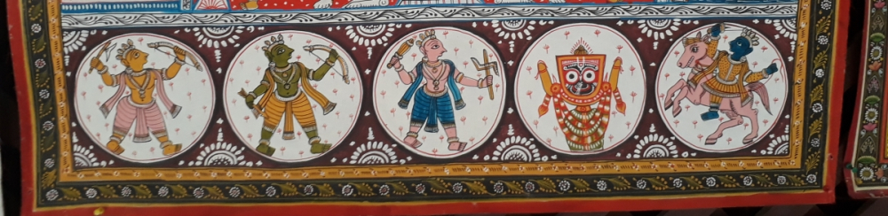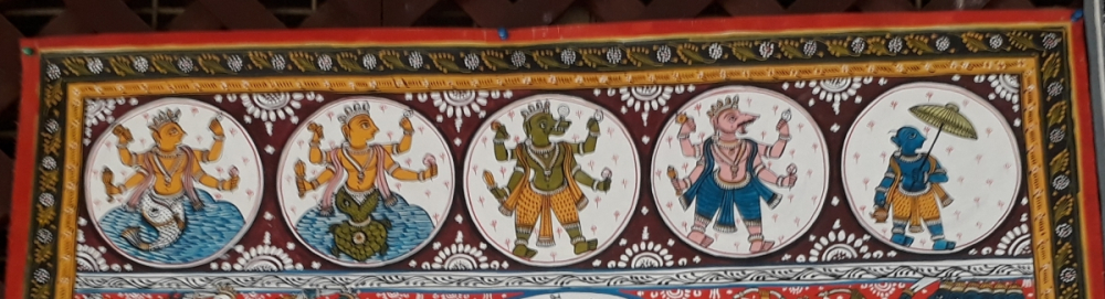 पुरी में जगन्नाथ मंदिर के सिंहद्वार की चौखट में दशावतार की मूर्तियां उत्कीर्ण की गयी हैं, उन्ही का प्रतिनिधित्व ठिया बढ़िया में चित्रित दशावतार के यह चित्र करते हैं।