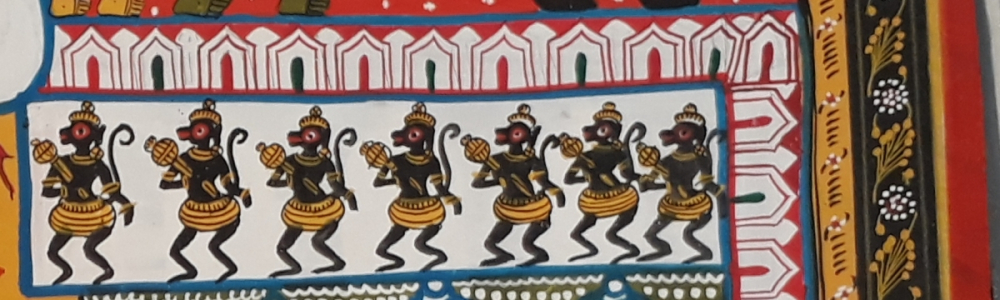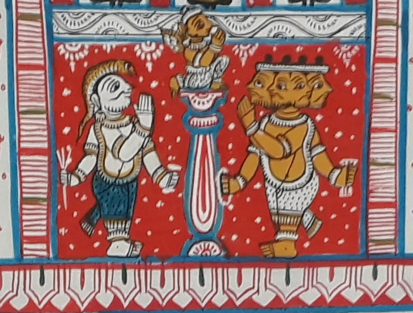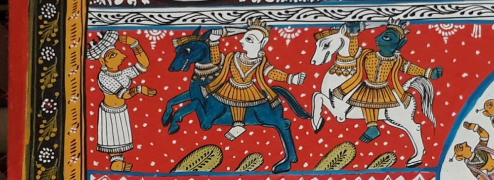 कांची अभियान का यह प्रकरण ठिया बढ़िया चित्रों में ऊपर के भाग में बनाया जाता है जिसमें सफ़ेद घोड़े पर जगन्नाथ और काले घोड़े पर बलभद्र सवार दिखाए जाते हैं , जगन्नाथ को काले एवं बलभद्र को सफ़ेद रंग से चित्रित किया जाता है। एक ओर माणिक दहीवाली भी अंकित की जाती है।