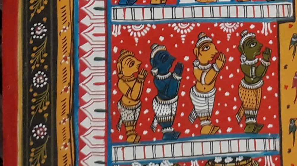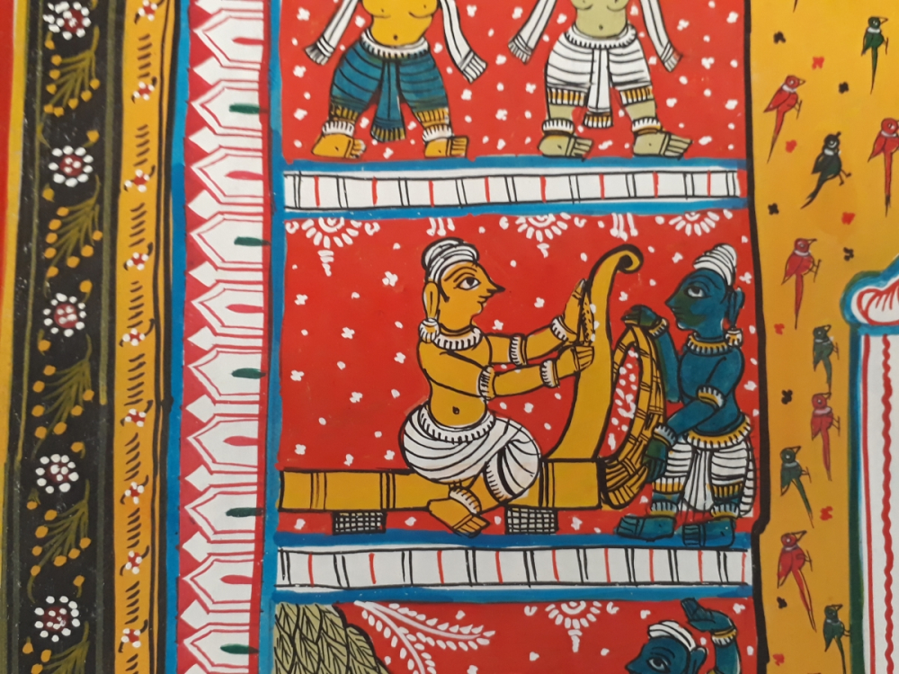 इसी देव स्नान आयोजन के प्रतिनिधि स्वरुप स्नान वेदि का चित्रण ठिया बढ़िया चित्रों में किया जाता है।