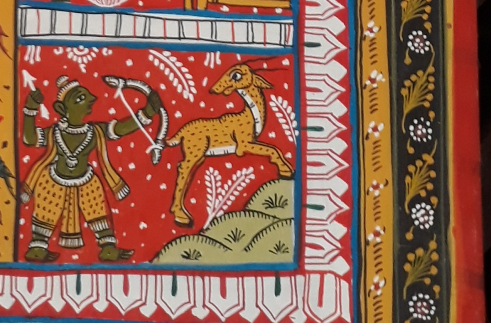 माया मृग - माया मृग रामायण का एक महत्वपूर्ण प्रसंग है , इसे प्रमुखता के साथ ठिया बढ़िया चित्रों में मध्य भाग में चित्रित किया जाता है। रामलीला और कृष्णलीला से सम्बंधित अनेक चित्र जगन्नाथ मंदिर के साथ बने नाट्य मंडप की छत और दीवारों पर बने हैं , ठिया बढ़िया चित्रों में बनाया जाने वाला यह दृश्य उन्ही का प्रधिनिधित्व करता है।