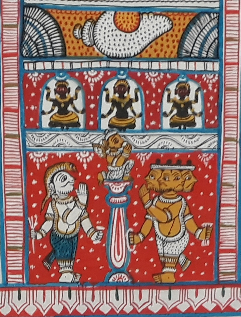 इन चित्रों के प्रारूप , चित्रांकित किये जाने वाले चरित्र , स्थल तथा गतिविधियां आदि लगभग निश्चित होती हैं परन्तु प्रत्येक चित्र में उनका दर्शाया जाना वहां उपलब्ध स्थान पर निर्भर करता है। बड़े आकर के चित्र में प्रत्येक घटना का चित्रण अधिक विवरणों सहित और सुस्पष्ट रूप से किया जाता है। परन्तु छोटे आकर के चित्र में कम महत्त्व के चरित्रों को छोड़ दिया जाता है या केवल प्रतीकात्मक रूप से दर्शा दिया जाता है। दर्शक चित्रित चरित्रों की पहचान उनके रंग और स्थान से ही करते हैं।