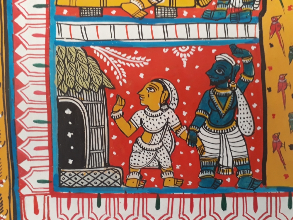 आमतौर पर ठिया बढ़िया चित्रों में यह आयोजन दर्शाने हेतु विवाह मंडप का चित्रण किया जाता है, जिसे ऊपर दाहिनी ओर चित्रित किया जाता है।