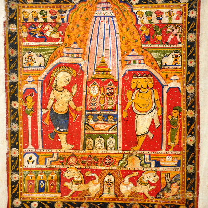 शिव - ब्रह्म्मा - जगन्नाथ मंदिर के नाट्य मंडप में शिव और ब्रह्म्मा की दो प्रस्तर प्रतिमाएं स्थित हैं जिन्हें जगन्नाथ से प्रार्थना करते दिखाया गया है। ठिया बढ़िया चित्रों में चित्रित की जाने वाली शिव एवं ब्रह्म्मा आकृतियां इन्हीं का प्रतिनिधित्व करतीं हैं। नारायण , शिव एवं ब्रह्म्मा को आदि देव माना। पुरी के जगन्नाथ मंदिर में तीर्थयात्रियों को इन त्रिदेव के एक साथ दर्शन हो जाते हैं।