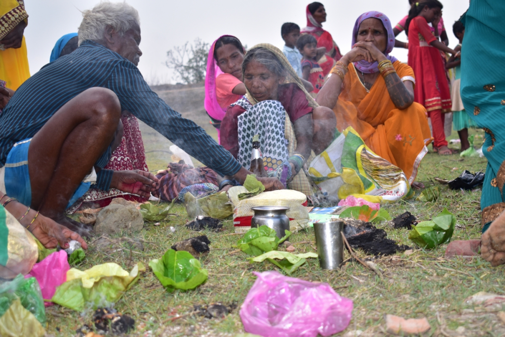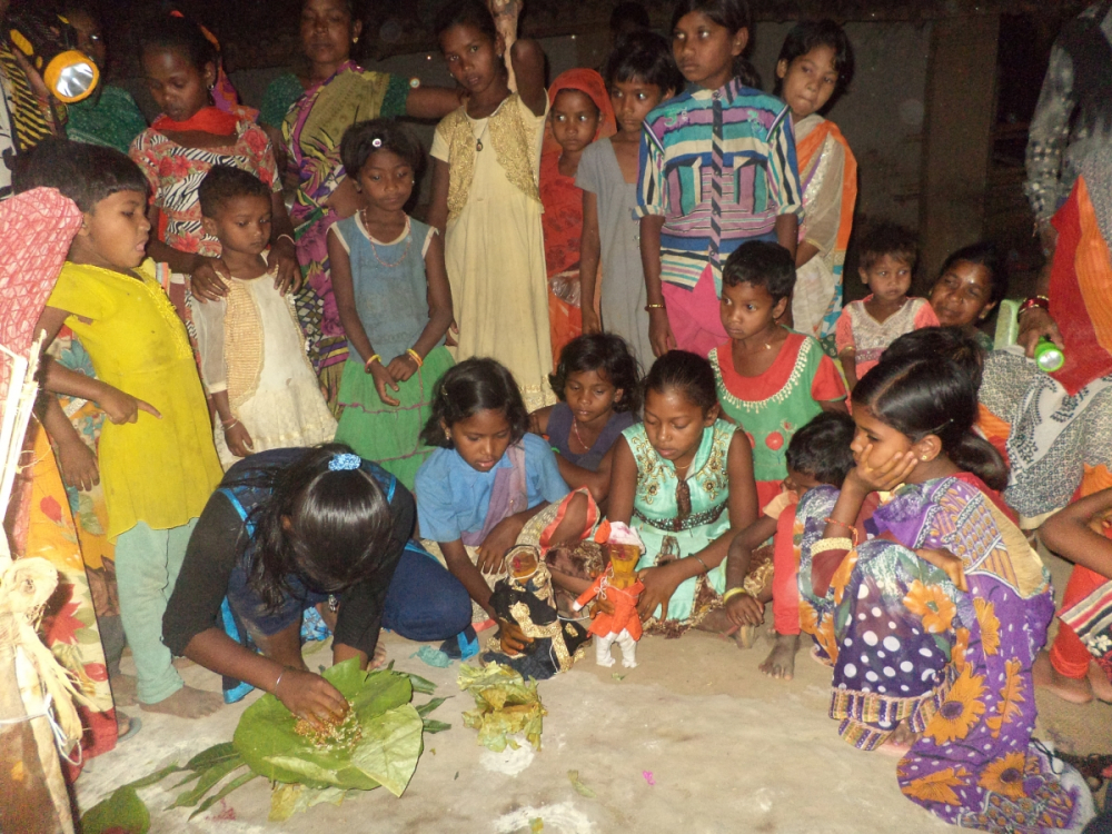 आकृति 20: कठपुतली विवाह संपन्न होने के बाद गुड्डा-गुड्डी को भोजन कराती बालिकाएं।