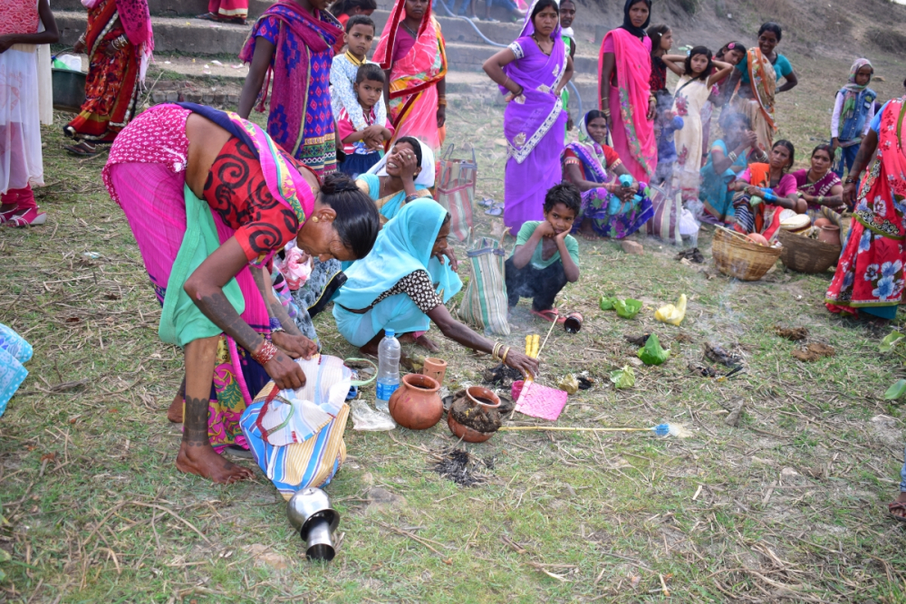 आकृति 5: साधु तालाब के किनारे अनुष्ठानिक कार्यों में व्यस्त महिलाएं, सरगुजा