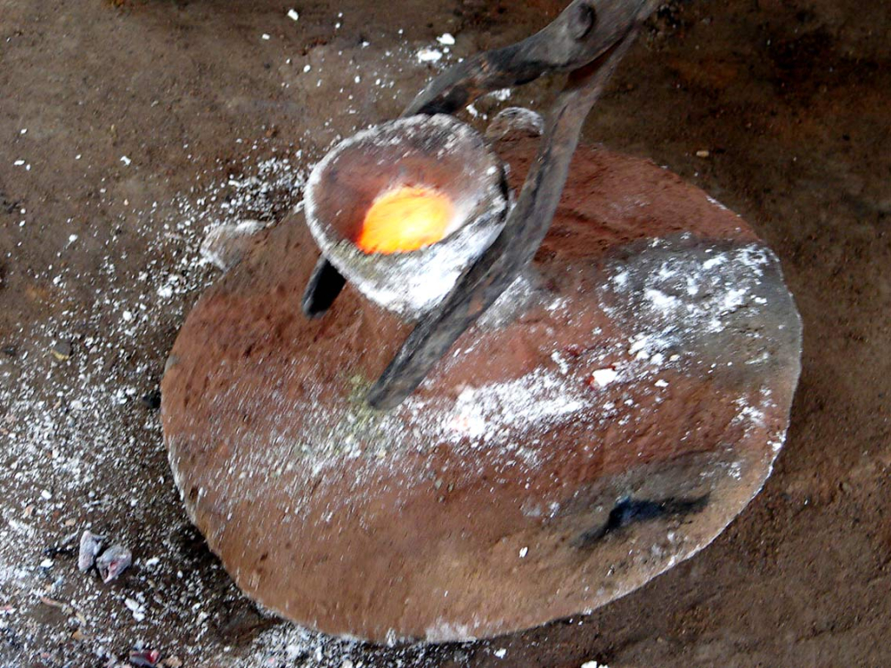 पीतल को क्रूसिबल में रखकर भट्टी में पिघलाने हेतु रखा जाता है।