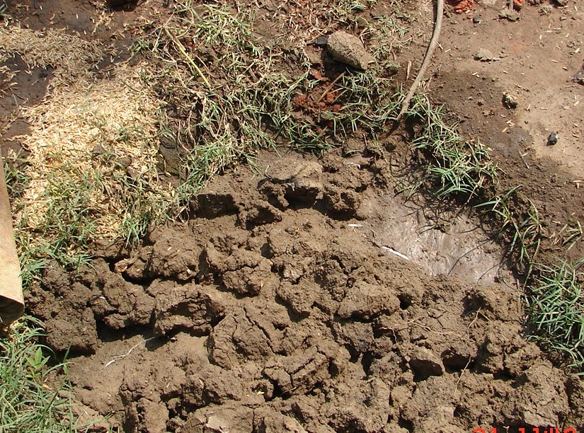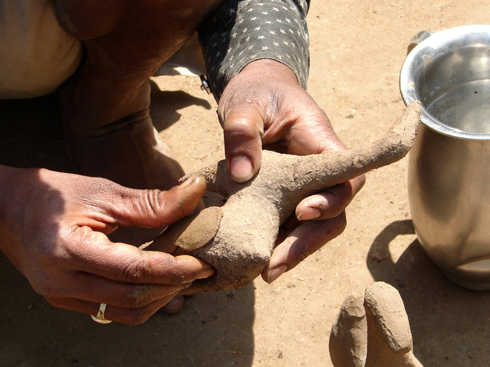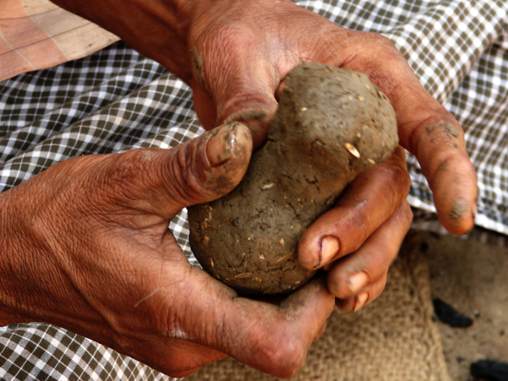 खेत से लायी गयी काली मिटटी में धान का छिलका मिलाकर गूंथ लिया जाता है ।