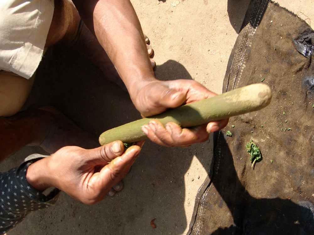 इस प्रकार सुडल की गई मूर्ति की उपरी सतह पर सेम की पत्ती रगड़ी जाती है । इससे पत्ती का रस मूर्ति की उपरी सतह पर लग जाता है । हरी पत्ती रगड़ने से मूर्ति पर लपेटा जाने वाला मोम झड़ता नहीं है, चिपका रहता है ।