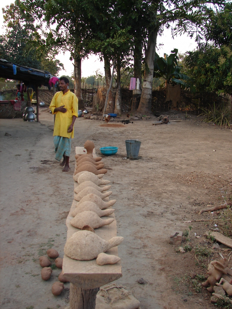 दीमक की बाम्बी से लाइ गयी मिटटी में चावल का छिलका मिलाकर तैयार की गई मिटटी से मूर्ति पर एक मोटी परत चढ़ाई जाती है ।