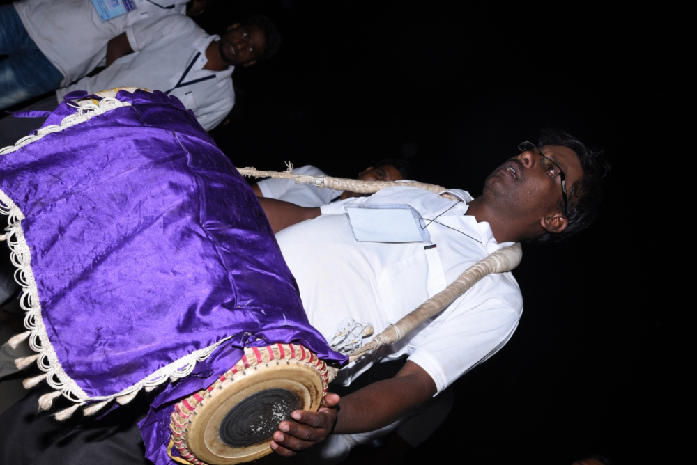 नृत्य करते-करते अपनी अंतिम तीव्रावस्था में नर्तक आत्मलीन हो जाते हैं और नृत्य की समाप्ति पर शांत-चित्त मंडप में ही बैठकर या लेटकर भाव समाधि में आबद्ध हो जाते हैं। गुरुप्रसाद व अमृत जल पाकर कृतार्थ हो जाते हैं।