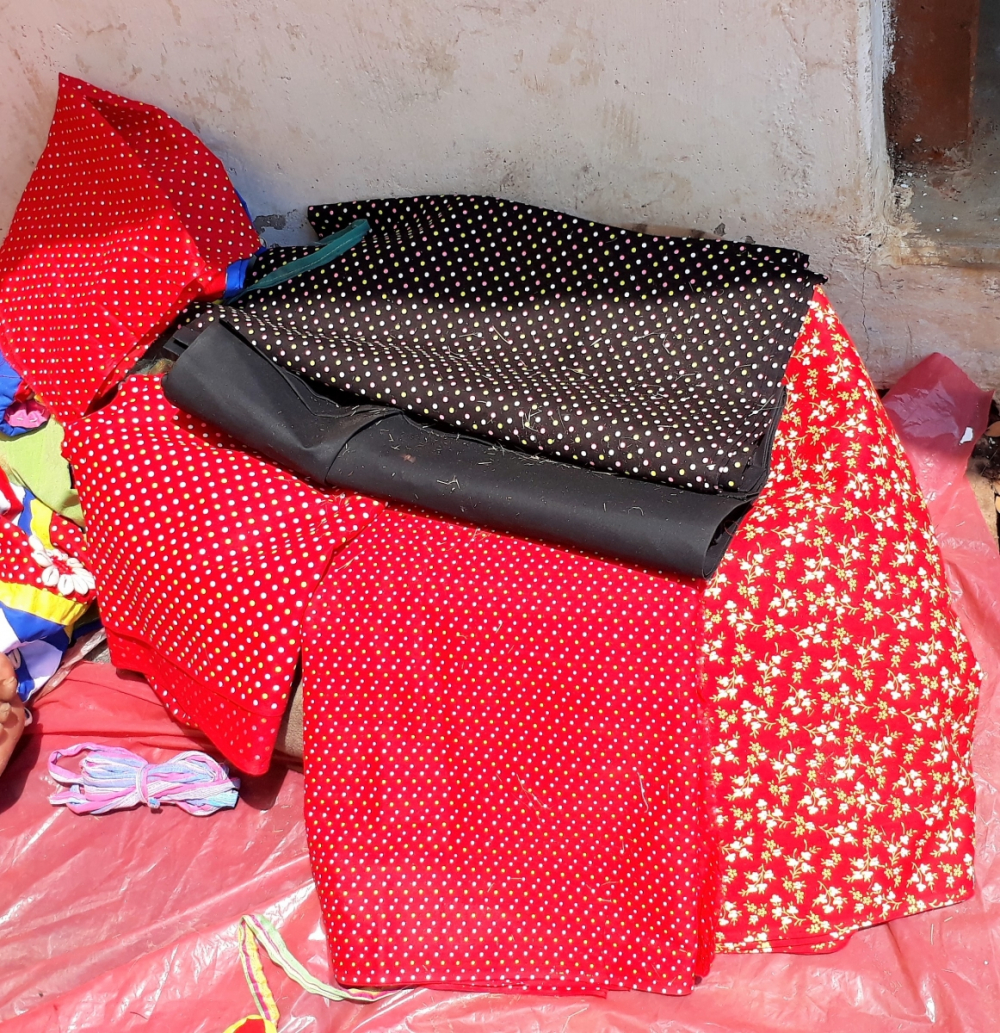 बंजारा लोग आदिवासियों के लिए लहंगा -चोली एवं अन्य उपादान बनाने हेतु लाल , नीले , पीले ,काले , सफ़ेद सदा सूती कपड़े और छींट के कपड़े का प्रयोग करते हैं। यह कपड़ा वे जगदलपुर और कोंडागांव के बाजार की एक विशिष्ट दुकान से खरीदते हैं ,जो वर्षों से उनके लिए ये कपड़े मंगाकर रखते हैं। यह कपड़ा अब मिल का बना हुआ होता है और सामान्य कपड़े से रंग और प्रिंट में थोड़ा भिन्न होता है।