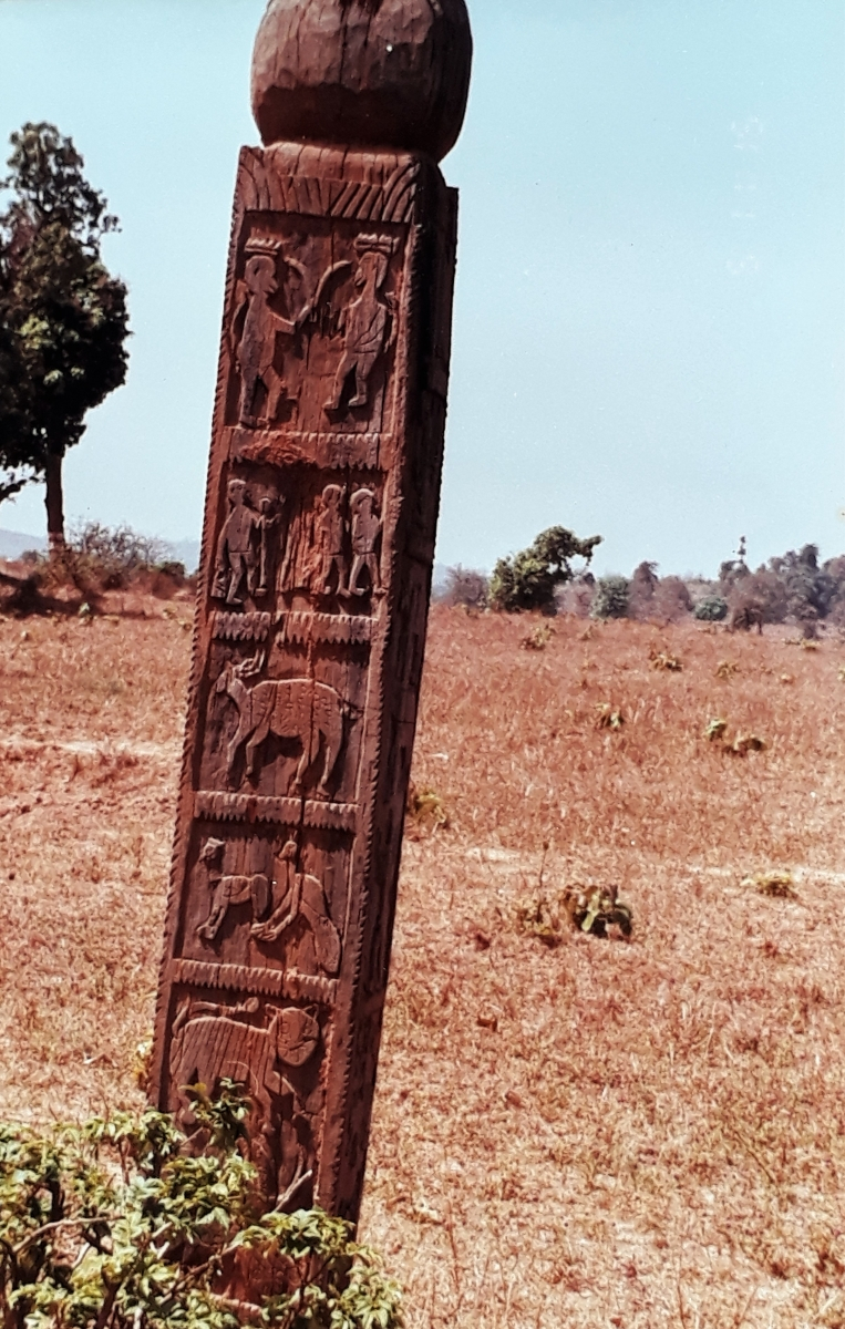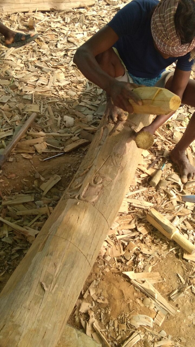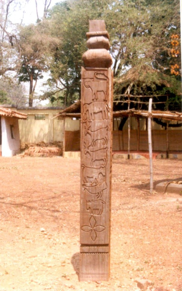 बलिदान खाम्बः बस्तर के आदिवासी एवं गैर-आदिवासी समाज में पशुबलि एक महत्वपूर्ण अनुष्ठान है। लगभग प्रत्येक गांव की देवगुडी के अहाते में एक ओर पशुबलि का स्थान होता है, जहां लकड़ी का एक बेलनाकार अथवा चैकोर खम्बा गड़ा रहता है। यहां बकरे या सुअर की बलि दी जाती है और उसके रक्त से खाम्ब पर टीका किया जाता है। मैंने अनेक बलिदान खम्ब देखे, इन पर किसी प्रकार की नक्काशी नहीं होती। केवल उपर के भाग में दो या तीन धारे उकरे दी जाती हैं। देव गुढ़ी में बलिदान खाम्ब की स्थापना समारोह-पूर्वक की जाती है और इसके सड़-गल जाने पर भी अपने आप गिर जाने तक यूंही गड़ा रहने दिया जाता है। पुराना खाम्ब गल जाने पर नया खाम्ब फिर समारोह-पूर्वक स्थापित किया जाता है। खाम्ब आमतौर पर सागौन अथवा हल्दू की लकड़ी का बनाते हैं।