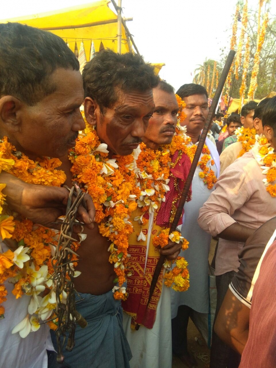 बिलई खुरी सांकल और सब्बल लिए सिरहा ,बस्तर. (फोटो -२०१८)