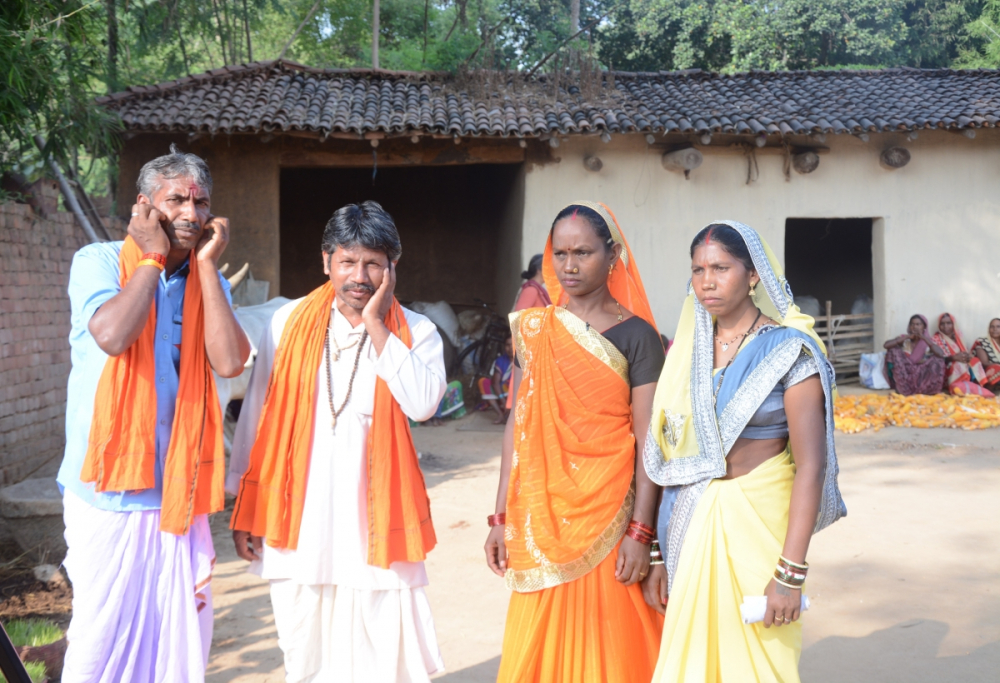 मण्डली द्वारा करमा गीत गायन , गांव बिनकरा , सरगुजा।