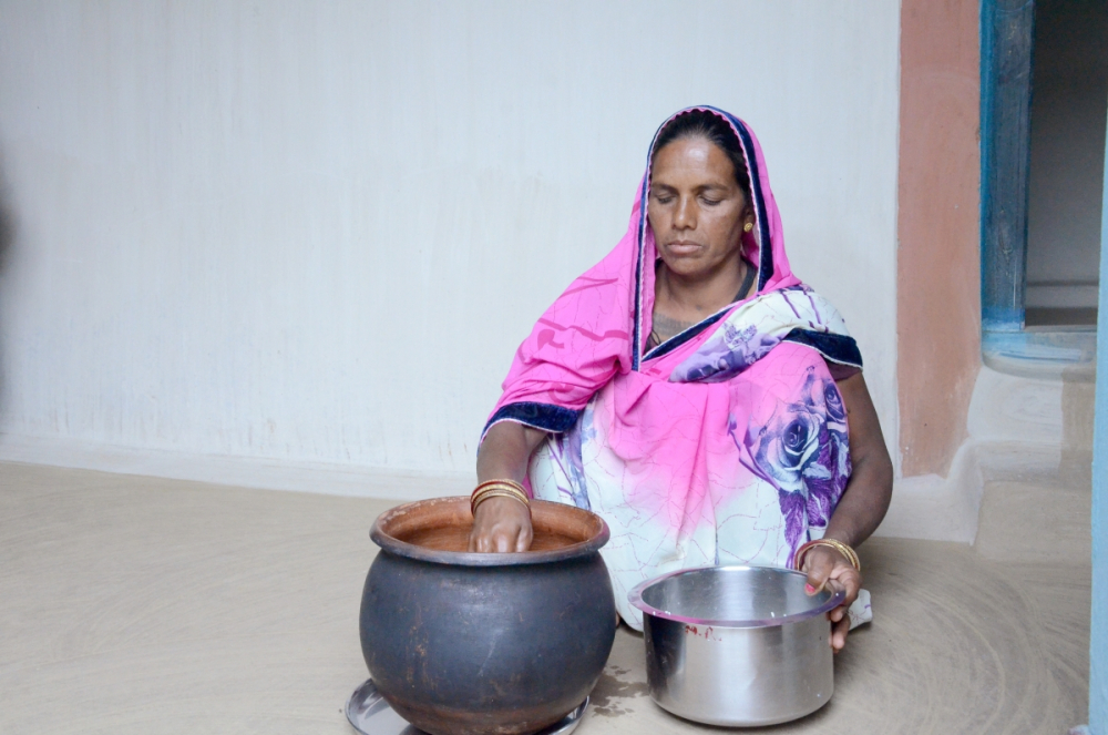 भोजन में इस्तेमाल होने वाली सामग्री अनाज, गुड़, शक्कर आदि रखने के लिये मिट्टी से बने मटकों का उपयोग होता है । ये छोटे छोटे आकार के होते है। इन्हें स्थानीय कुम्हार बनाते हैं । हाण्डी का तेल, घी, शहद, आदि द्रव्य पदार्थ रखने के लिए उपयोग किया जाता है। छोटी मटकी का उपयोग सब्जी बनाने और दूध गर्म करने के लिये किया जाता है। अनाज रखने के लिये प्रायः कोठी का उपयोग होता है जो कच्ची मिट्टी से बानी होती है।