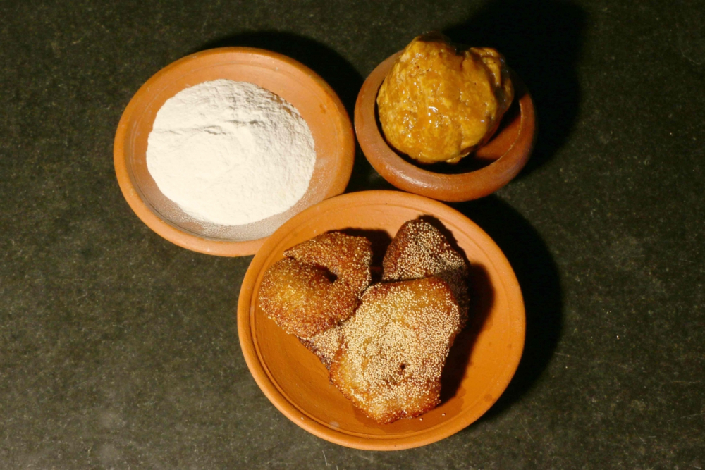 14. खसता रोटी, खाजा, खुरमा सभी आटे की।