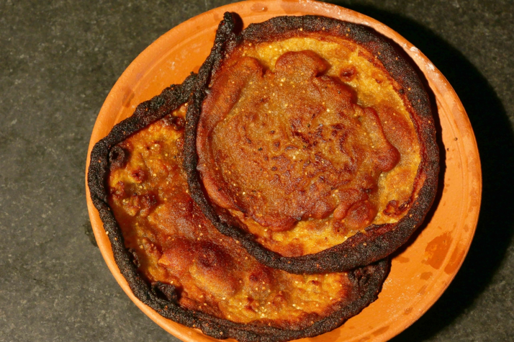 2. अंगाकर - पत्तों में लिपटी मोटी रोटी
