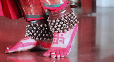 The Sanskrit equivalent of ornament is bhooshana; the verb bhoosh means ‘to adorn or decorate with'. Indian classical dances, with the exception of Manipuri, often involve heavy foot work displaying complicated patterns of rhythm. The ghungroos or anklets worn by the dancer, of course, add to the aesthetics of the performance but also carry out a more prominent role in complementing and accentuating his/her foot movements, thus enhancing the appreciation of rhythm. There are innumerable references to the ghungroo and its various versions in ancient Sanskrit literature. Sculptures of gods, goddesses and other celestial beings in temples across India display excellently crafted ghungroos. This module hosts an overview that highlights the position of ghungroos in Sanskrit literature and dance forms, images of Hoysala sculptures wearing exquisitely crafted anklets, a visual documentation of traditional silver anklet-making techniques, another video that documents the ceremonies associated with ghungroo in Yakshgana (a traditional Indian theatre form) and also a textual interview with a mela conductor.
