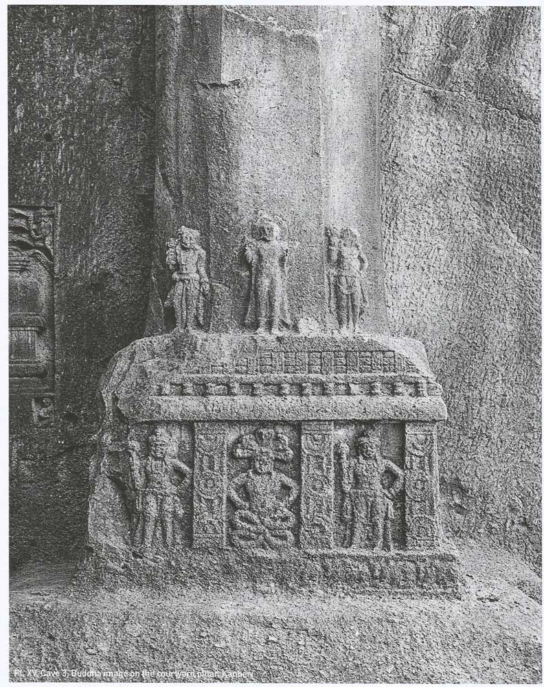 Fig.1. Kanheri chaitya Cave 3, forecourt: Buddha figures on the pillar