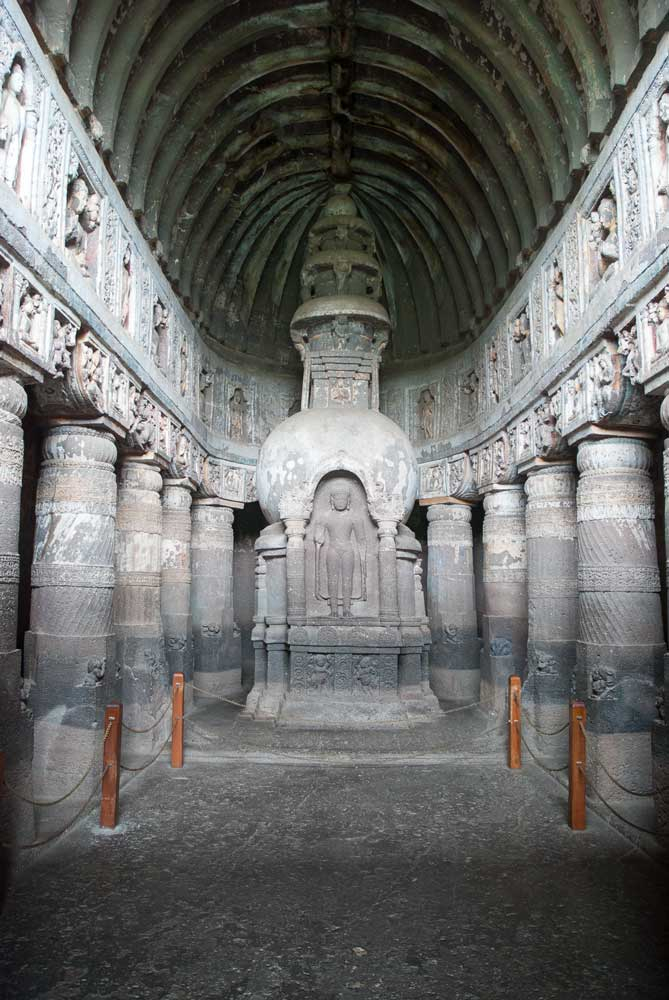 Fig. 3 Ajanta chaitya 19, hall with Buddha image and the stupa (photo: R.K. Singh, courtesy of ASI)