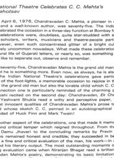 Indian National Theatre Celebrates C. C. Mehta's Amrit Mahotsav
