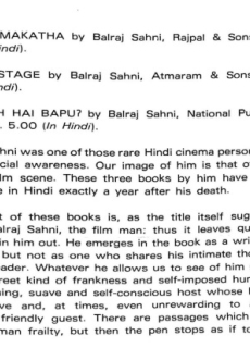 Reviews of Books Authored by Balraj Sahni
