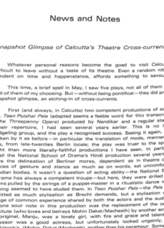 A Snapshot Glimpse of Calcutta's Theatre Cross-Currents