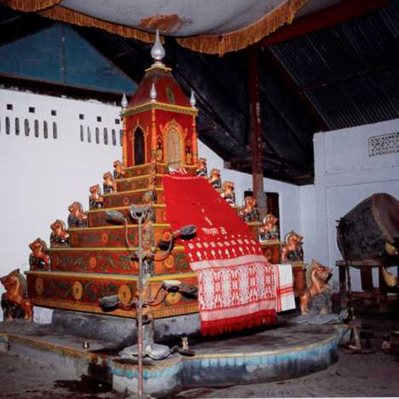 Vrindavan Vastra is a 400-year-old traditional textile from Assam, woven with the theme of Krishna’s various exploits. Prof. B.N. Goswamy traces the travels a particular piece from Assam to Tibet to London; from a Vaishnava setting to a Buddhist monastery; from being a hanging filled with ‘monsters and charms’ to back to being valued as a sacred textile. (Inpic: A simhasana in a satra monastery, a type found in the satra in Majuli island, Assam; Photo courtesy: The Tribune)