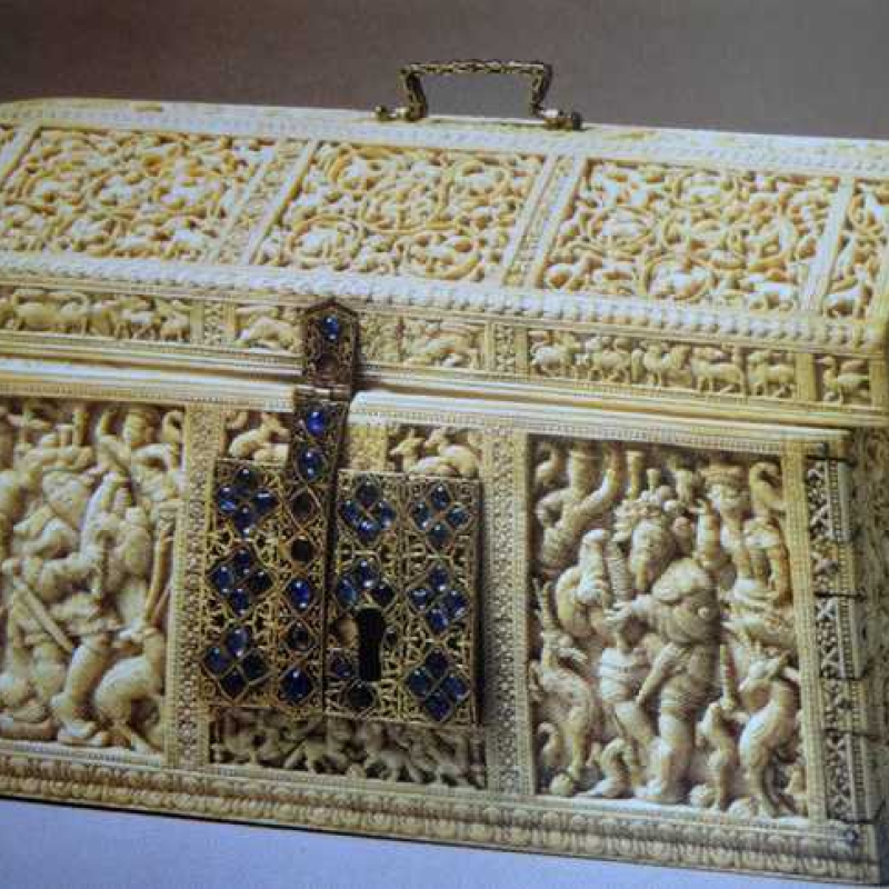 “All the days of my life, I have seen nothing that rejoiced my heart so much as these things,” Durer wrote once on seeing some gifts sent by an Aztec ruler to the king of Spain, “for I saw amongst them wonderful works of art, and I marvelled at the subtle ingenia of people in foreign lands. Indeed I cannot express all that I thought there.” The great artist would certainly have been excited by seeing his work integrated with the intricate carvings on the ivory casket that we have been talking about. But he was no longer alive in 1557, having died 30 years before.