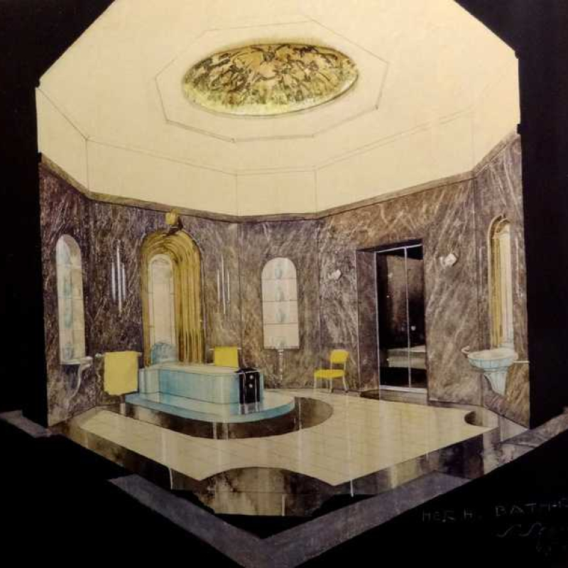 As for design, many of the things he made for the Umaid Bhawan palace are still intact: the hallway leading to the maharaja’s private quarters as well as his wife’s bathroom, for instance; the first chamber too with its rows of tasteful sofas divided by cabinets, the bathroom with its colour scheme of gold and black and an ‘uber-chic’ bathtub and sink. Not all his designs were realized, but a collection of 23 drawings of interiors still survives in the palace: a testimony to the talent and the versatility of this gifted Pole.