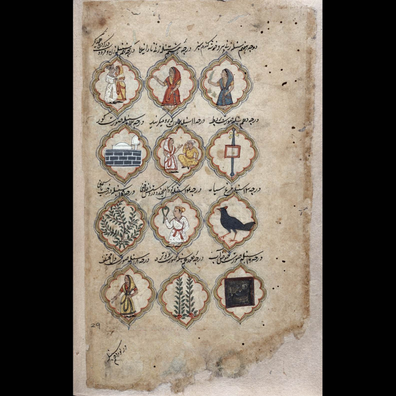 Years ago, walking the streets of Boston, I found myself peering through the show window of an antiquarian book shop where, among other artfully arranged things—volumes bound in gilt and leather, ancient maps invitingly spread out, seemingly rare old editions—lay open a quarto-sized book with elegantly calligraphed Persian text and an illustration that, seen at least from that distance, appeared Indian. Intrigued by the unlikely company it was keeping, for every other book there must have been in English or Latin or Greek, and in any case, as I am never able to resist the temptation of acquainting myself with an old Indian object, or the time-laden smell of old paper, I entered the shop.