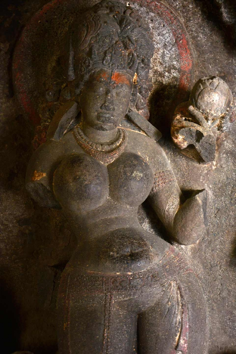 There are several other art historians, like Cunningham, Stella Kramrisch and Zimmer, who wrote about the caves of Western India and referred to Aurangabad caves in their writings. Carmel Berkson’s The Caves at Aurangabad: Early Buddhist Tantric Art in India is a significant work on the caves of Aurangabad. Other than a formalistic analysis of the carvings, her study also highlights the growth of Tantrayana as observed in the carvings of the caves of Aurangabad. Pia Brancaccio’s The Buddhist Caves at Aurangabad: Transformations in Art and Religion throws light on various factors, cultural, historical and religious, that might have formed a backdrop to the development of Aurangabad caves. Her concerns go beyond the iconography and chronology of the said caves and take into account international trade communities that might have influenced the developments in the caves of Western Deccan at large.