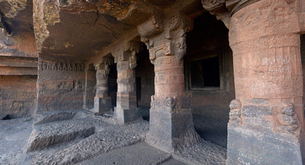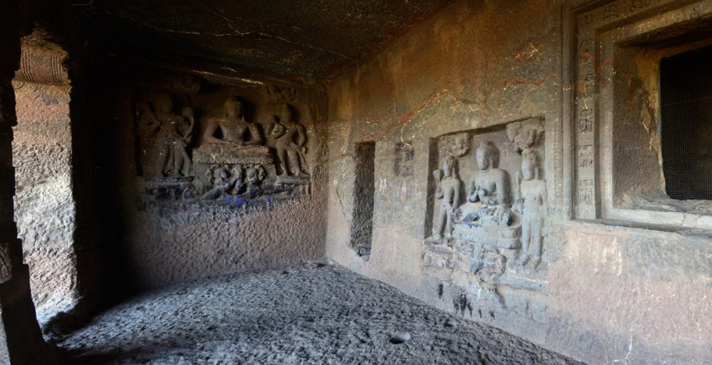 The inscription confirms that there were two caves of the early period—a chaitya and a vihara. The chaitya can be seen even today, and has close similarities with Cave 9 of Ajanta, which dates to the first century CE. However, the vihara, which was mentioned in the inscription, cannot be found. It could have been a small vihara that probably collapsed later due to the brittle nature of the basalt rock at Aurangabad.
