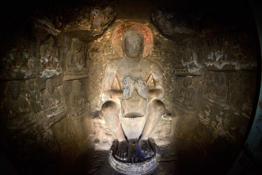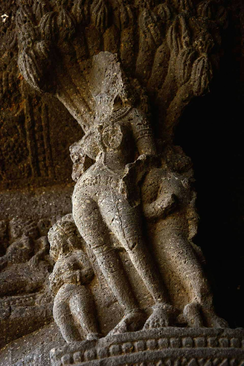 Interestingly, a reference to the Aurangabad caves has been found at Kanheri, a group of cave temples in Mumbai’s Borivale National Park (Sanjay Gandhi National Park). In his book The Iconography of Buddhist Sculptures of Ellora, Ramesh S. Gupte notes an inscription in Kanheri’s Cave-IV which reads, 'Rajatalaka Paithana path asana chulika yu kuti kodhi' (Qureshi 1998). It can be translated as, 'In the paragana or taluka of Paithan called Rajatalaka (ancient Aurangabad) a small temple (kuti) and hall (kodhi) were erected at the Vihara of Sevaja.'