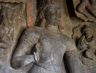Images of Cave 7, Cave 9 and unfinished cave excavations at the Buddhist caves of Aurangabad