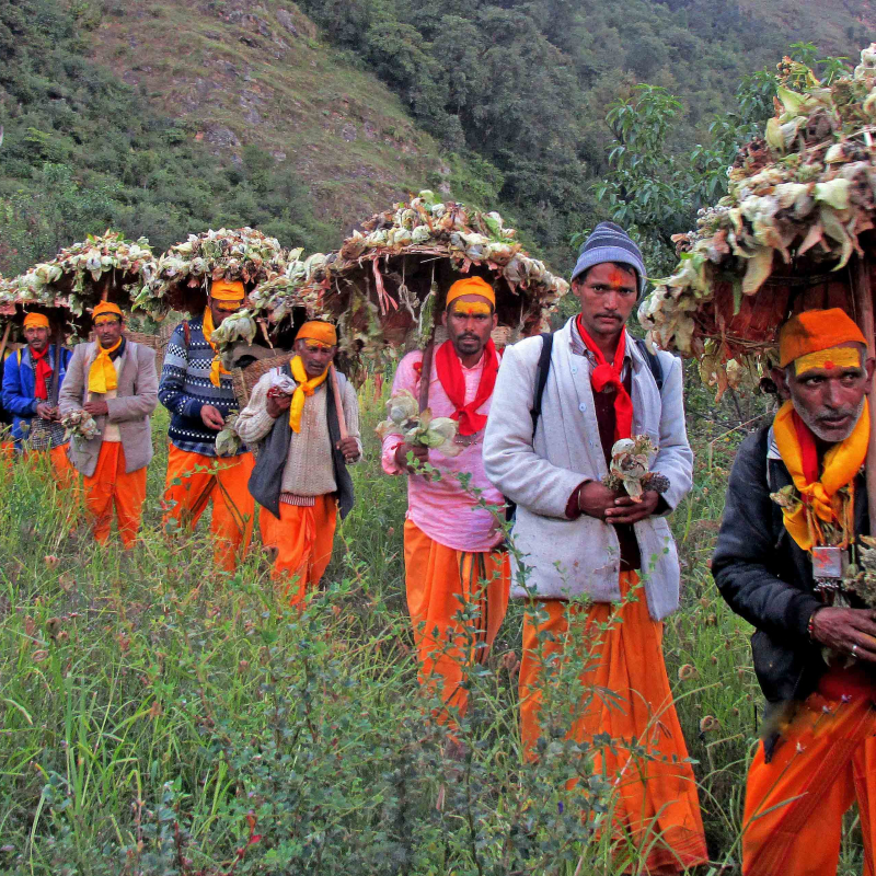 नंदीकुण्ड में यात्रा सम्पन्न करने के बाद जात दल अपनी कंडियों में ब्रह्मकमल तोड़कर अगले दिन वापस घर की ओर आते हैं। यही ब्रह्मकमल गाँव वालों को प्रसाद के रूप में वितरित किया जाता है। (Fig.13)