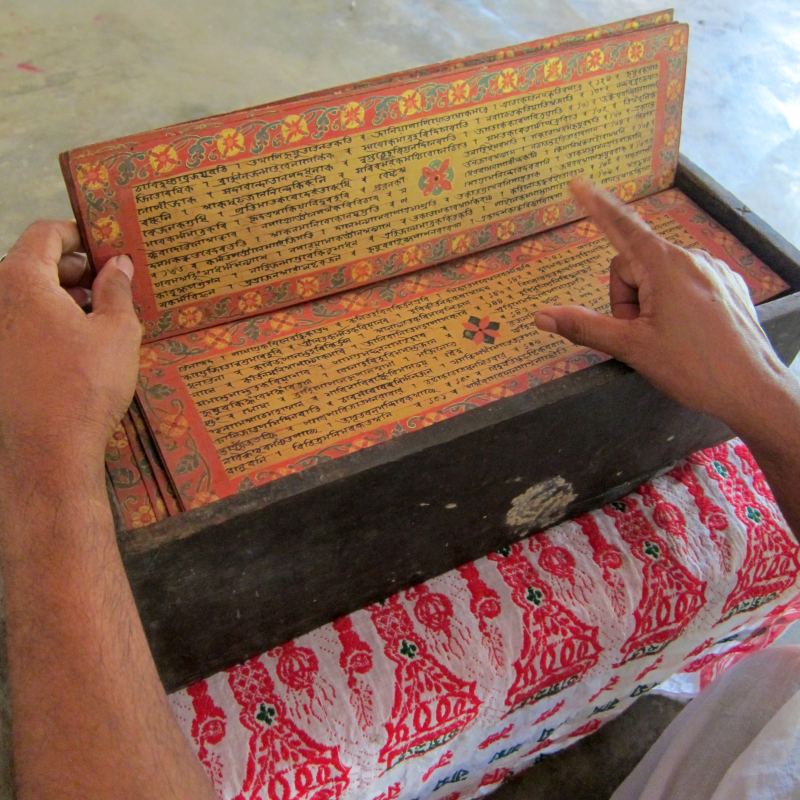 Artistic expression flourished in the wake of the nama-dharma as Shankaradeva devised songs, dances and drama to carry the message of bhakti and reach out to the people. Among these were the borgeets or devotional songs and the ankiya natas or yatras which were the popular plays, the themes of which were derived from the epics and the Puranas. In the post-Shankaradeva period, the narration of guru-charitas or the life-stories of saints such as Shankaradeva, Madhavadeva and others as part of kirtana sessions and within the sattras or Vaishnava monastic institutions also contributed in popularising the faith. Initially circulated as an oral tradition, a large number of charitas were compiled in the written form during the 17th and 18th centuries.[iii] These texts are also important sources for an understanding of the processes of the spread of the nama-dharma in Assam.