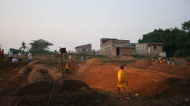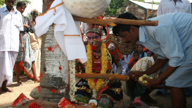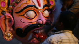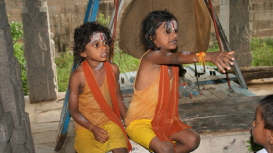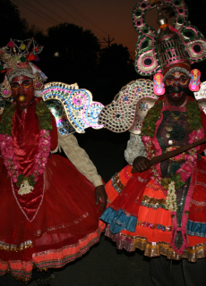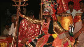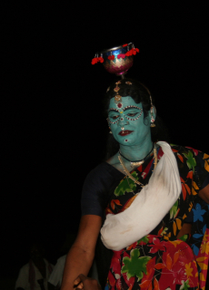 This module presents the Mahabharata festival of Tamil Nadu (Bharathakoothu), its settings, rituals, storytelling (Piracankam), theatre (koothu), festivities and practices in a series of photo essays. Bharathakoothu is a large-scale festival that takes place nearly for a month in the northern districts of Tamil Nadu during the summer months (April-June). The festival usually takes place in more than 40 villages simultaneously though not in the same villages every year. As a post-harvest festival, the wealth of the harvest determines the capacity of the village to host the festival. A village may decide to host the Bharathakoothu in its entirety or on a small scale lasting for three to seven days. The site of the Mahabharata festival is normally the Goddess Draupadi temple. Since the Draupadi temples are found all over the northern districts of Tamil Nadu (including the city of Chennai), the festivities are widespread and have a huge following. In the northwestern districts of Tamil Nadu (Salem, Krishnagiri and Coimbatore), the Koothu exists as a folk theatre with a slight difference in performance style and the costumes. The photo essays in this module make use of the field photographs taken in the fifty Draupadi Amman temples in the district of Kanchipuram and the Bharathakoothu festival in the villages of Takkolam and Tuci. In a month-long Bharathakoothu, mornings are devoted to rituals and processions. For the first fifteen days, the afternoons are dedicated to narrating the Mahabharata by professional storytellers. From the 16th day onwards Mahabharata episodes are performed as Koothu in night-long performances. Many of the episodes in Mahabharata are performed not just on the stage but also in the village streets, and sometimes in the entire village with the villagers participating as citizen characters of the Mahabharata. The participatory aspects of Bharathakoothu make it one of the largest environmental theatres in the world. The Bharathakoothu festival culminates with the fire-walking of the devotees of Draupadi and the coronation of Dharmaraja, the eldest of the Pandava brothers.