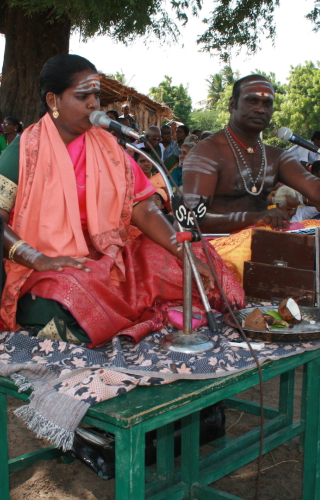 In this section, we will see the interaction between the storytellers, the theatrical performances (Koothu), and rituals in Bharathakoothu. Though conventionally the storytellers narrate Mahabharata in the afternoons and the Koothu would take place as all-night theatrical performances, during Bharathakoothu there are many occasions where the storytellers play crucial roles guiding and narrating the course of events.