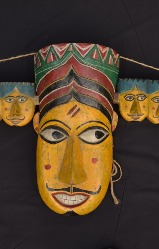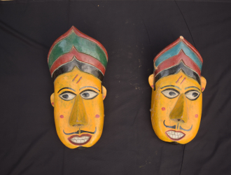 This image gallery contains photographs of the Bhari Gan dramatic art, highlighting its salient features like the wooden masks used in plays, style of performance, role of the Mul (leading performer) and the ritual worship of masks. The masks are the striking feature of this folk genre and the gallery represents masks of different characters. Photographs of two different Bhari Gan troupes are included. Bhari Gan is practised by the Rabha tribes of Assam, and the images also give a glimpse of the socio-religious life of the tribe.