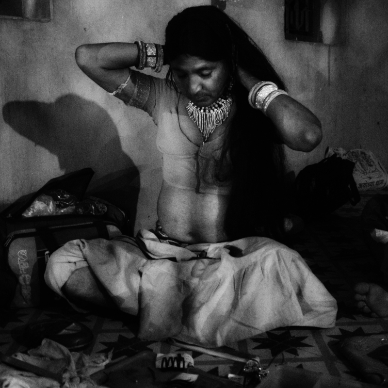 Rajibhai* and I find time to talk in between performances. He has to be on his feet tonight as he has a bit role to play in all the skits. He takes a deep puff of his beedi before he starts speaking, ‘This lifestyle? It’s not the worst. I know some young men from village who have taken to alcohol, drugs. They are intoxicated all the time. People take their name as if they are talking about a disease. Compared to them, I am doing great. People even come and touch my feet when I play Hanuman and other gods.’