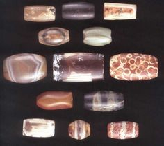 Figure 9: Harappan beads: an etched bead at the extreme right in the middle row
