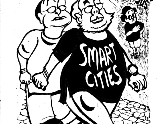 Images of sketches from E.P. Unny's cartoon series 'Business as Usual' that appears in The Indian Express