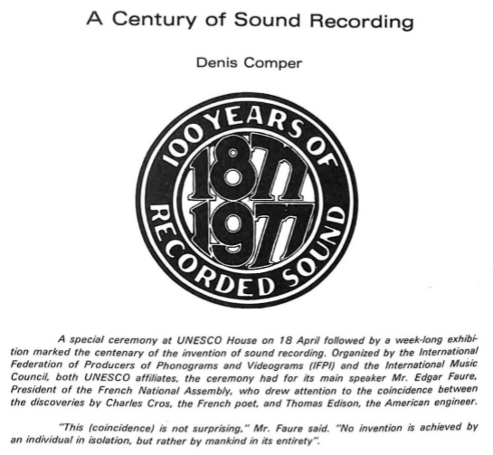 Denis Comper writes about a brief history of sound recording. Journal Author Name Denis Comper Date of publication 1st Jan 1977 Volume no 6 Issue no 3