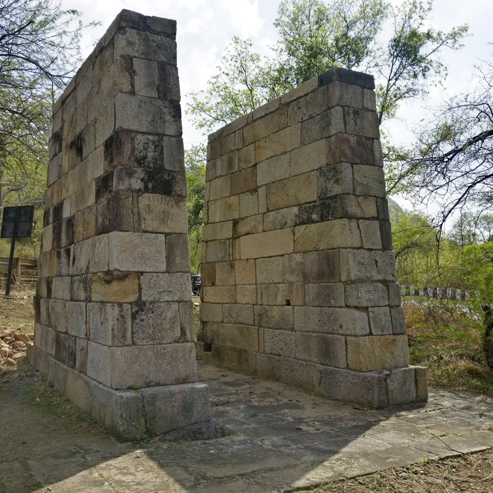 The hill fortress atop the Pavagadh Hill still shows evidences of a wide range of structures designed for both defence and offence, such as the catapults which stand near the Atak Gate.