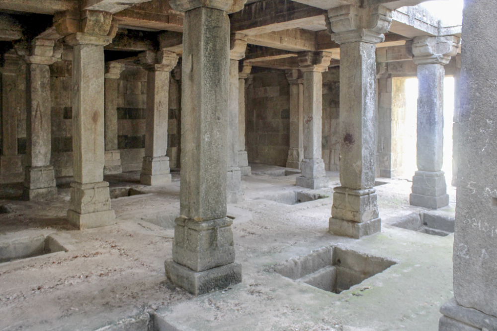 The oldest temple at the Champaner-Pavagadh archeological park is the Lakulisa Temple, dated around the 10th–11th century and situated on the Mauliya Plateau on Pavagadh Hill. Lakulisa was an ardent devote of Lord Shiva and is credited with having initiated the Pasupata cult of the Shaivas. The chief elements of the Lakulisa Temple are the garbha griha (seat of the main deity), antarala (space where worship is conducted), mandapa (inside porch) along with eight intricately carved pillars. Brahma, Vishnu, Kalyanasundara Murti, Dakshina Murti, Gajendra Moksha, Indra, Ambika, Surasundaris are just some of the many figures of deities carved in the Lakulisa Temple. The iconography of Lakulisa is unique: the idol of Lakulisa is seated in yogasana posture with a yogapatta and a band of cloth around its knee.