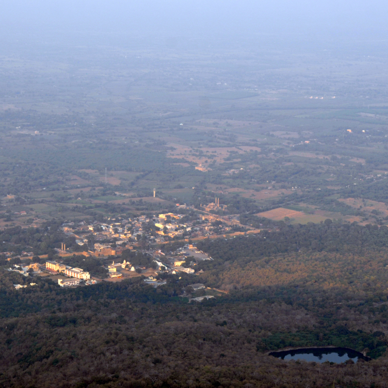 There are two hypotheses regarding the origin of the names, Champaner and Pavagadh. The geographically inclined theory points towards the light yellow and red pigmentation of the igneous rocks of the Pavagadh Hill which are often compared to the ‘Champaka’ flower or that resemble the flames of fire from which are derived the name Champaner for the town and Pavagadh for the hill. The alternative theory that finds its basis in the social and political history of the region claims derivation of the nomenclature from two political figures—‘Champa’, a minister of King Vanaraja, a ruler of the Chavada dynasty of Gujarat, and a headman of the Bhil tribe residing in the vicinity who was also named ‘Champa’.