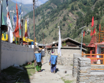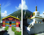 Unlike the terraced or staggered settlements found in the hilly regions, this village has a linear settlement with houses on either side of the street, with no boundary walls. The street acts as a social space for the community. With changing times, the community members have constructed boundary walls for privacy and security. Despite the new physical boundary, the community members use the street as a space to interact while knitting wool in their leisure time. The arrangement of houses and the house form is a result of their occupation of animal husbandry and climatic conditions. The houses are typically load-bearing structures built on stilts with columns that are made of either stone or a combination of stone and wood. Walls of the houses are built with the koti banal (timber-reinforced stone masonry) construction technique. The transhumance nature of the community led to the confluence of Hindu and Buddhist religious practices and beliefs. These influences have shaped the built environment of the Bagori village.