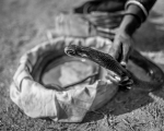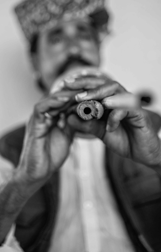 Traditionally, while young boys and adult men went out to catch snakes and earn a living as saperas, women in the Kalbeliya community worked as midwives and healers. Once they set up their temporary camps close to a village, Kalbeliya women would be visited by pregnant ladies and girls with their various health issues. One of the most sought-after concoction is soorma that the Kalbeliyas prepare from snake venom and a mixture of herbs and oils. The white, waxy paste is known to prevent and cure eye disease. All members of the tribe use soorma from a very young age, and they believe that no Kalbeliya would ever go blind or need glasses to read. This treatment is still in demand in far-flung areas of Rajasthan.