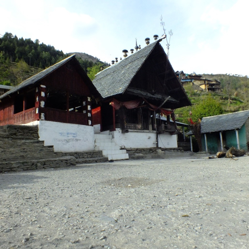 Although the earliest temples in Chamba used stone as their building material, wooden temples such as Devi Kothi, Churah and Chamunda temple of Chamba became the popular and standard architectural style from the eighteenth century. Devi Kothi temple’s architecture comprises a simple pent roof, a cella, a pradakshina-path pavement, and richly embellished wooden ceiling and pillars.